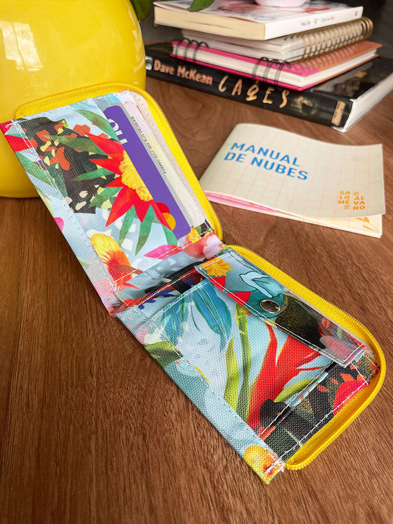 Nuestras billeteras están hechas con los retazos de nuestras telas, de esta forma le damos una nueva vida a los residuos.
