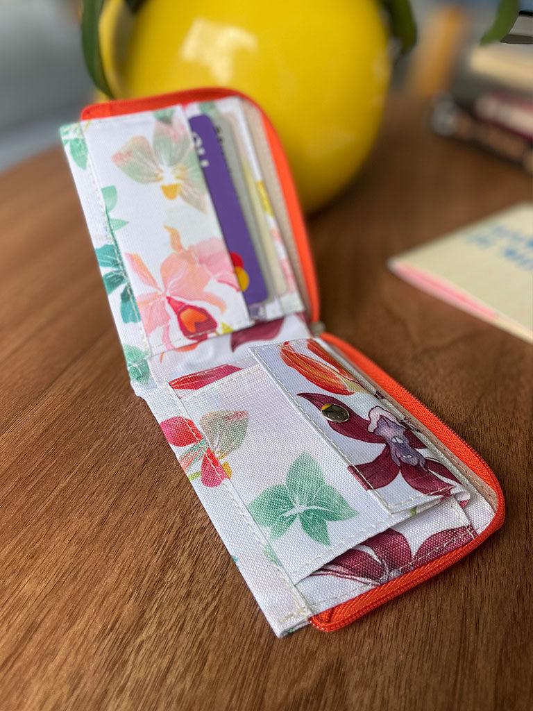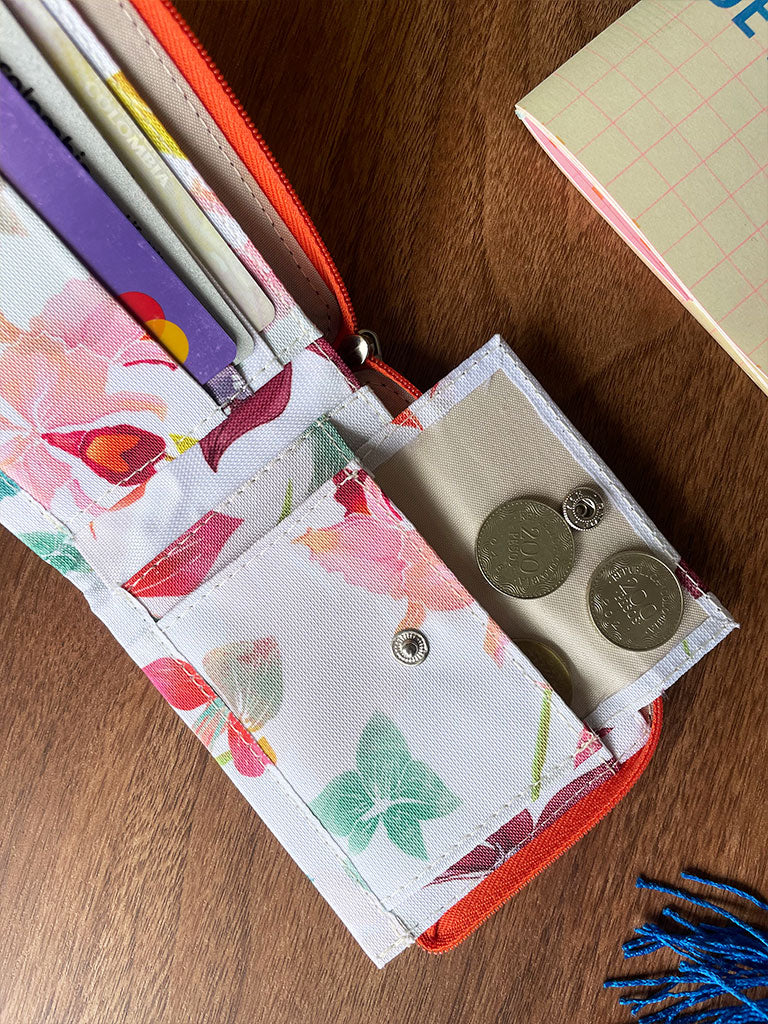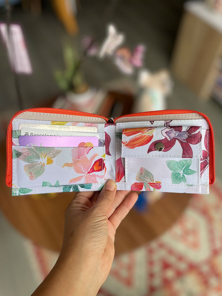 Nuestras billeteras están hechas con los retazos de nuestras telas, de esta forma le damos una nueva vida a los residuos.
