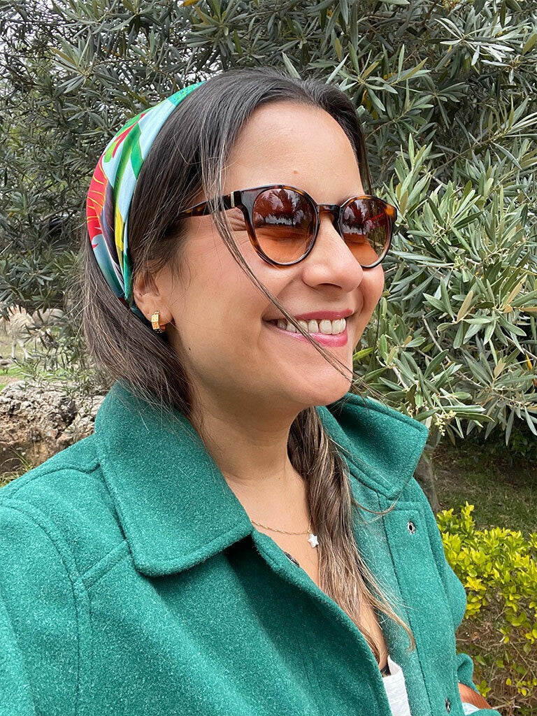 Pañoleta hecha 50% con botellas de plástico recicladas y 50% poliéster.