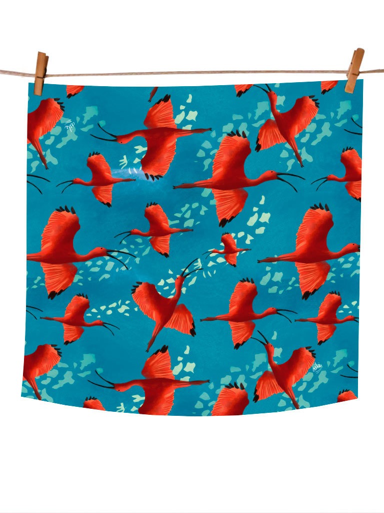 Pañoleta hecha 50% con botellas de plástico recicladas y 50% poliéster.